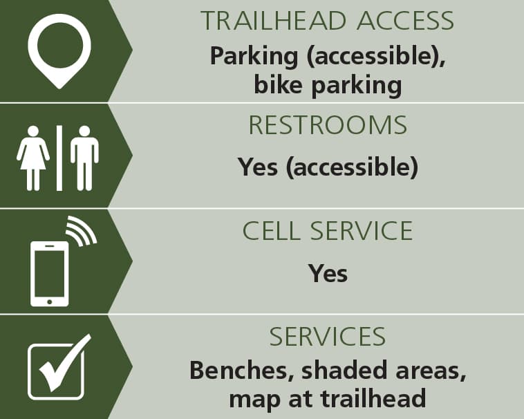 Signage and information is presented at the trailhead in both English and Spanish.