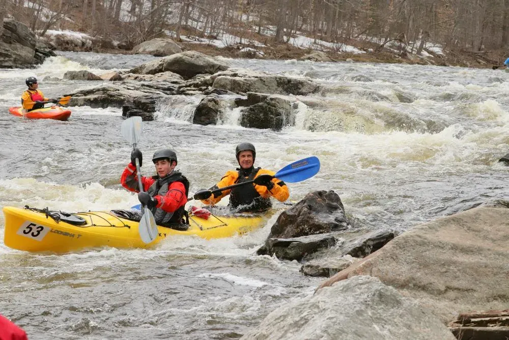 A 5.9-mile race course including a flatwater section to start, followed by a longer and more challenging section with Class III rapids and a mandatory portage around Flat Rock Falls.