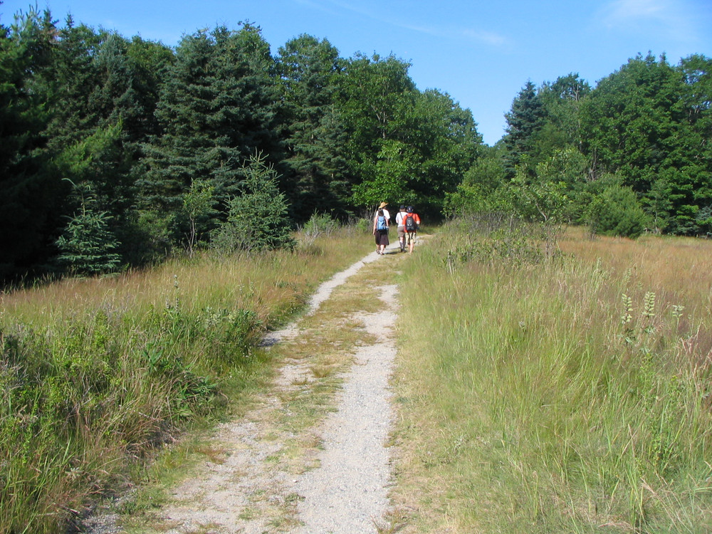 For three hours during low tide, 1.5 hours before and after the exact low tide time, a gravel bar is exposed connecting the town of Bar Harbor and Bar Island. The bar provide opportunities for investigating small tide pools. Once on the island, the trail gradually ascends through the forest on an old road. At the next junction, bearing right leads to an old home site with a view of Bar Harbor. Bearing left, the trail gradually ascends to the highest point and provides another view of Bar Harbor. Time your hike carefully for exploring the uninhabited island. Be aware that the timing of low tide changes by approximately 50 minutes each day, so you should find a tide chart and follow it carefully.