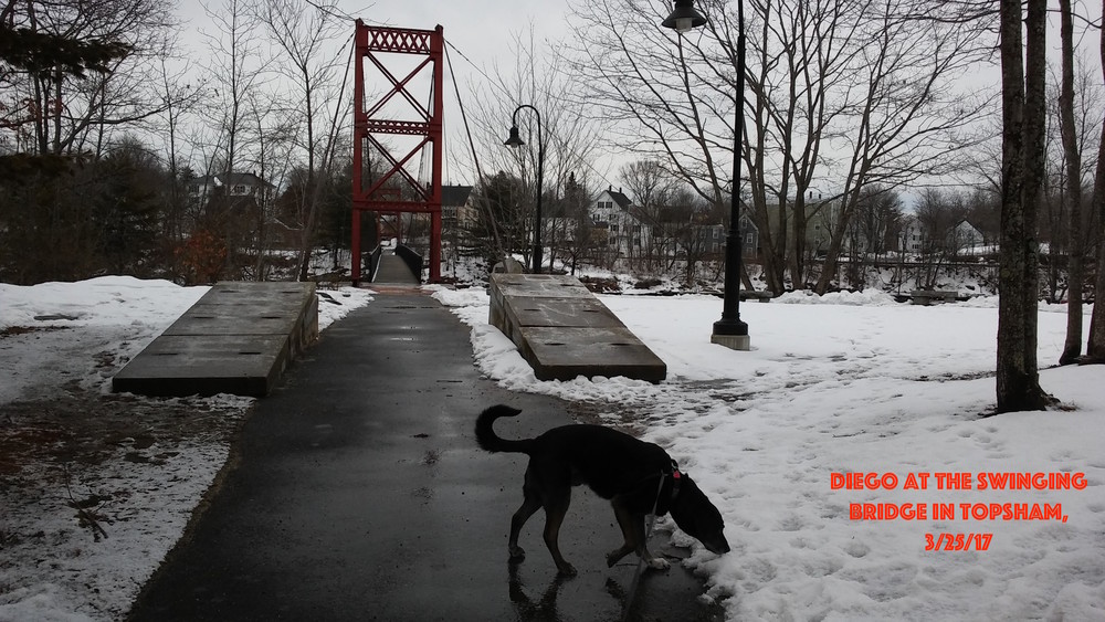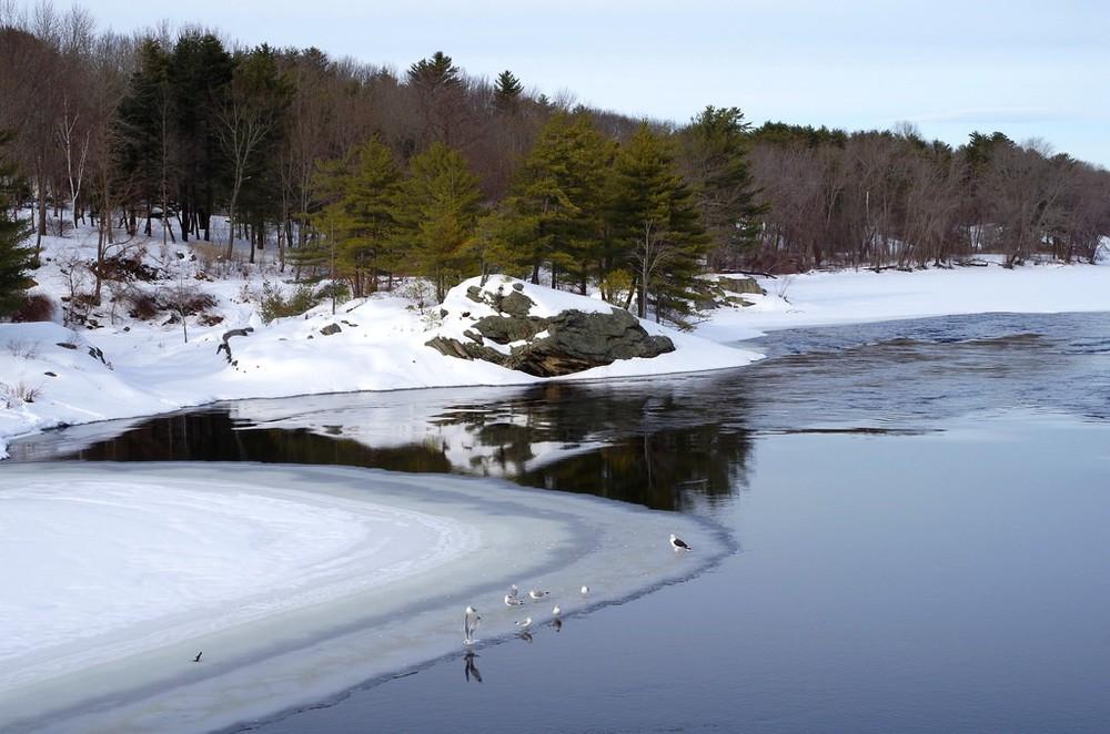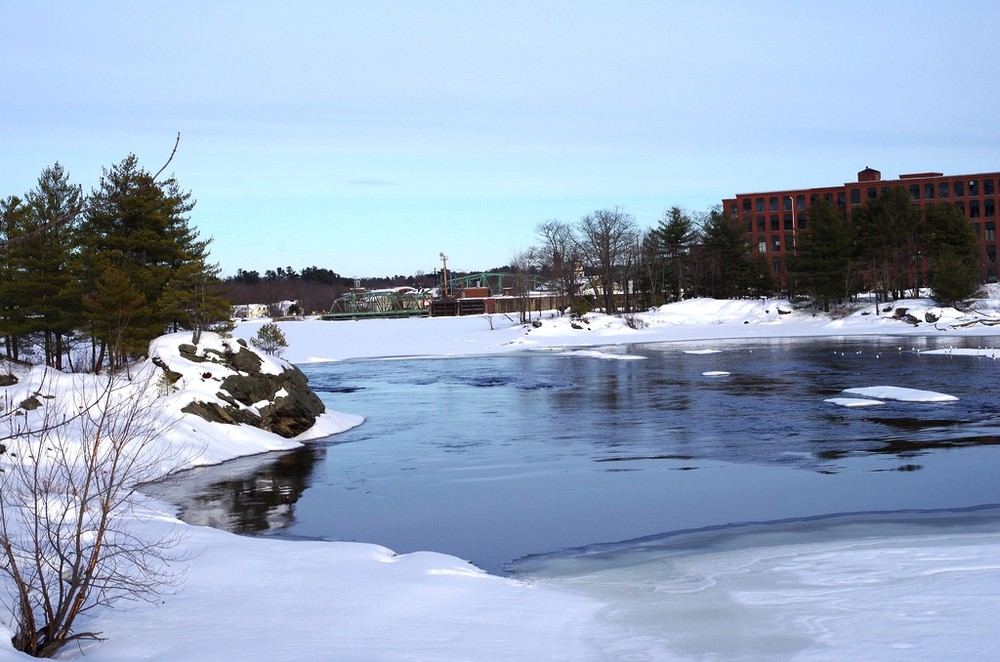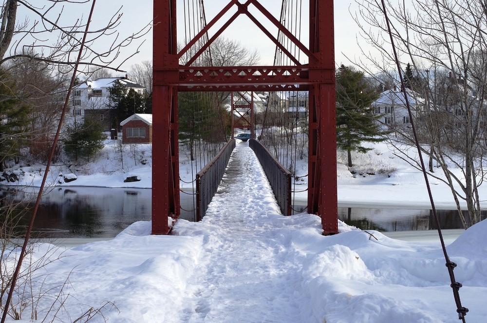 Located along the Androscoggin River at the border of Topsham and Brunswick, this scenic walk provides stellar views of the Bowdoin Mill and the Androscoggin River. Along the Topsham bank, you will find a quieter path in the woods, but the highlight of the trail is the two bridges. A swinging pedestrian suspension bridge spans the river upstream, offering a dramatic view of the river. The back road bridge downriver meanwhile provides views of the rushing river as it flows across the dam.