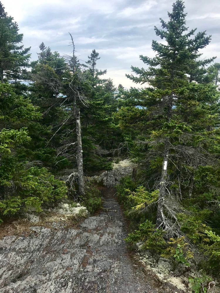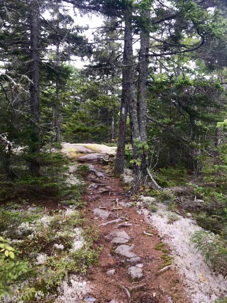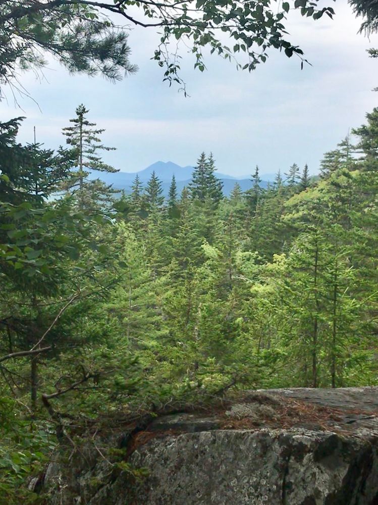 From the west: (1.7 miles one-way) Follow the Appalachian Trail from the parking area and past a side trail leading to the Pleasant Pond Lean-to, after 0.3 miles. Pass another side trail leading 0.2 miles to a small sand beach on Pleasant Pond (which is also accessible from the lean-to). The rocky trail leads steeply uphill through dense woods. The trail climbs over rock ledges which open up for great views at the summit and site of the former fire tower.