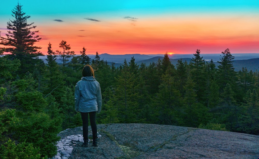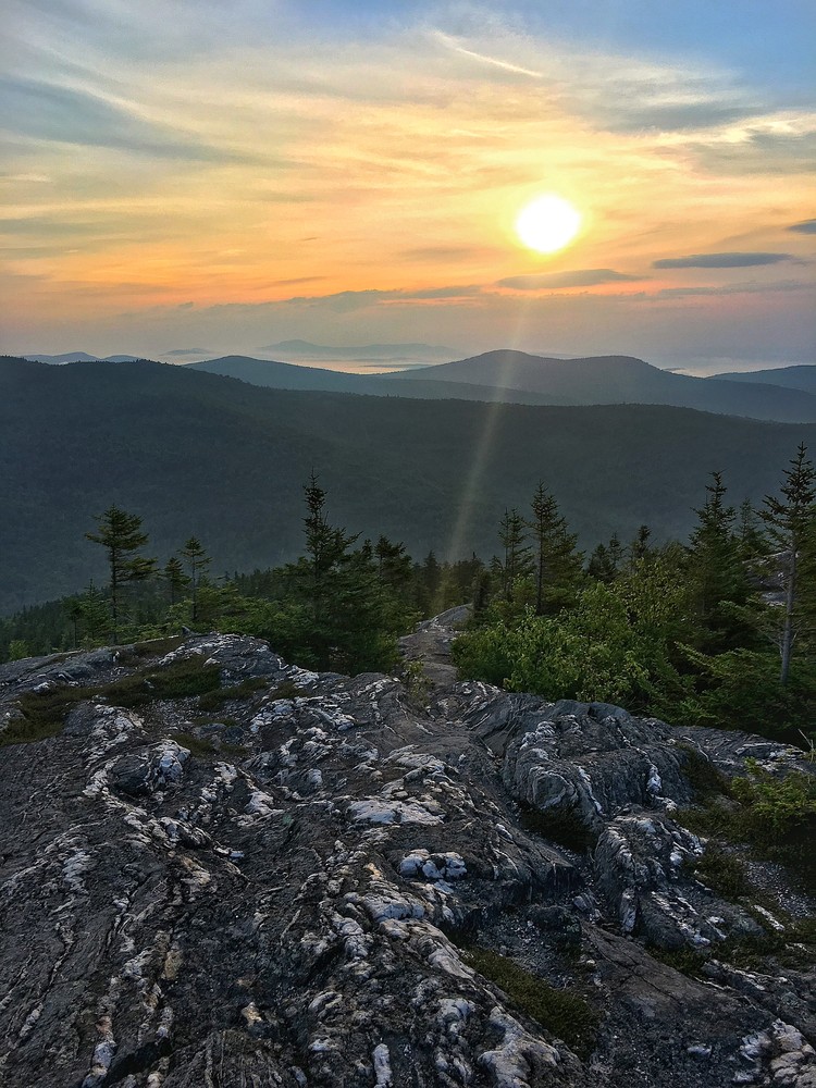 Most of the trail is forested. Short, marked spur trails provide alternative ways up (down) two especially steep sections of trail. Approaching the summit, the dirt trail turns into wide slabs of granite, marked with blue trail blazes and occasional cairns. Appropriately named, the top of Bald Mountain is bare, exposing breathtaking views of local and distant mountains. On a clear day, the rocky top's 360-degree view of Maine's conspicuous beauty is a sweet reward.