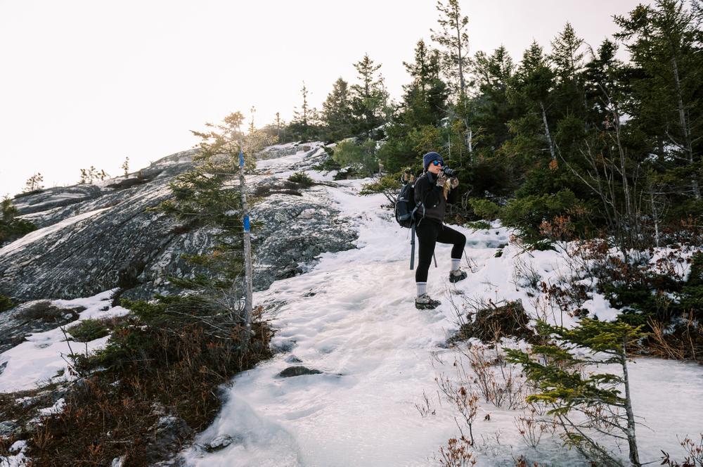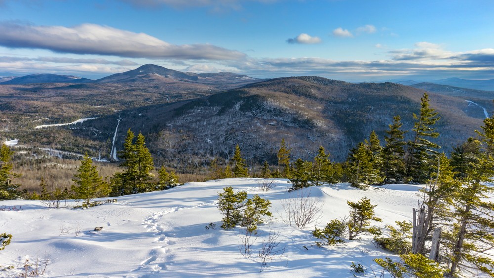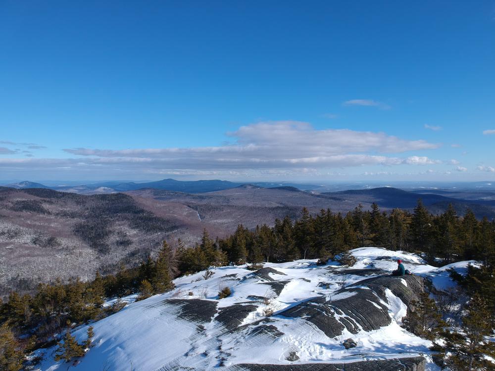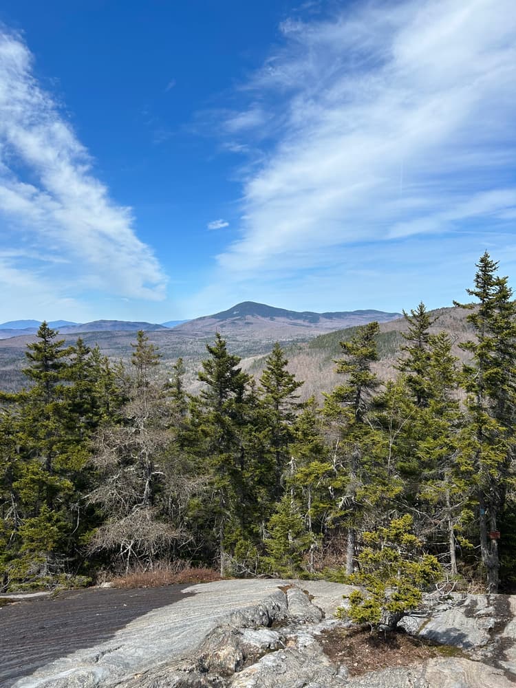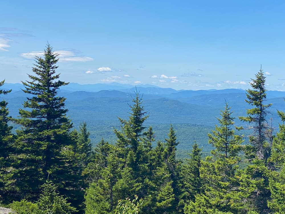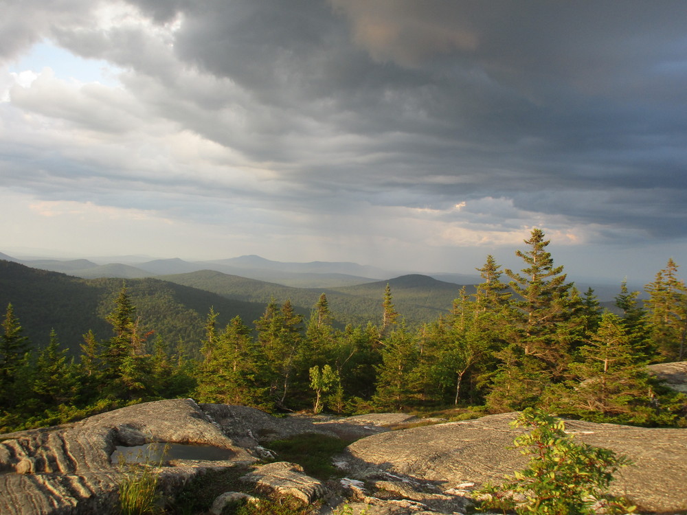 The Bald Mountain Trail provides picturesque views of the Weld area. It is a local favorite with steady, steep hiking. The trailhead - along the road's sandy apron - is very simply marked. Thirty yards from the trailhead is a small brook crossing. Though there is not a footbridge, large rocks allow hikers to keep their feet dry. During the early spring season, with snow and ice melting, the stream crossing may be challenging due to high and fast water. Always wear appropriate footwear as rocks and ledges may be slippery when wet or still snow covered or icy.