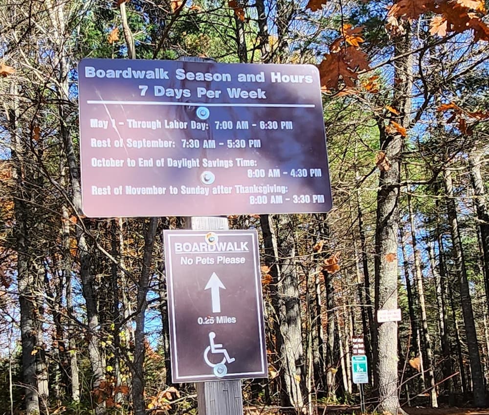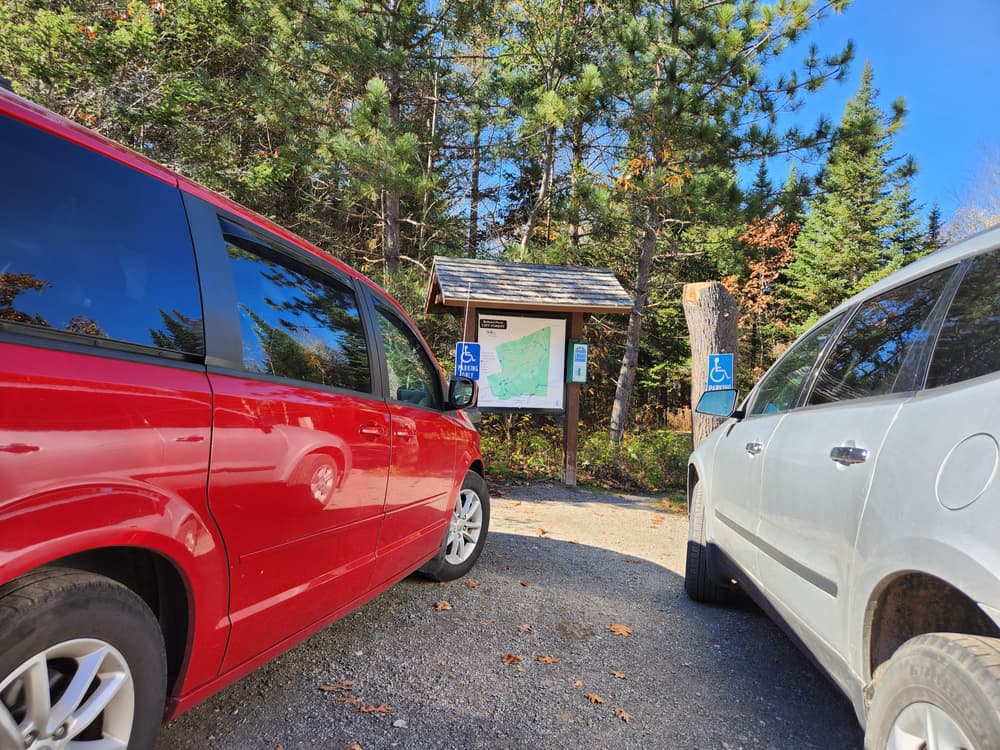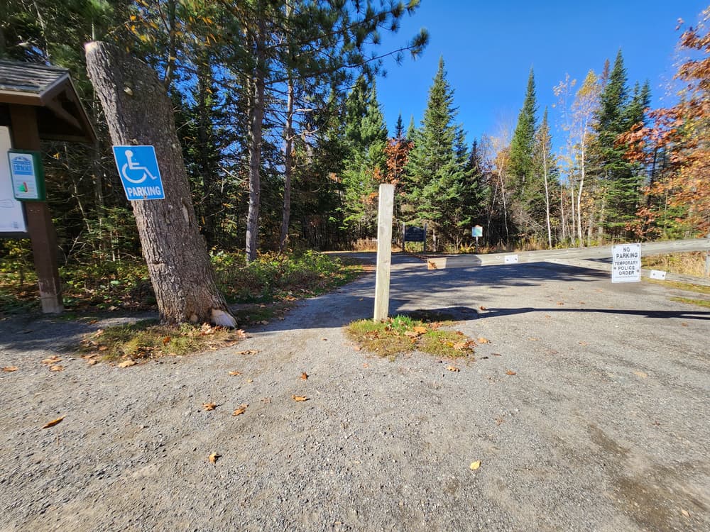 The 4 miles of gravel access roads are made up of the Main Road running north-south, with the Tripp Road looping off from the Main Road to the southeast, and the Loop Road looping off from the Main Road to the northwest, allowing for loop options of various lengths. The surface of these gravel roads is part gravel, but as often as not is more of a dirt surface with some gravel and some larger stones interrupting the surface. The grades are moderate, typically 4%, and these trails remain wide throughout, rarely less than 8 feet and often wider. There are a couple benches along the trail, and maps at the trail junctions. See Trail Access Information & Considerations below for more information about this Accessible Adventure.