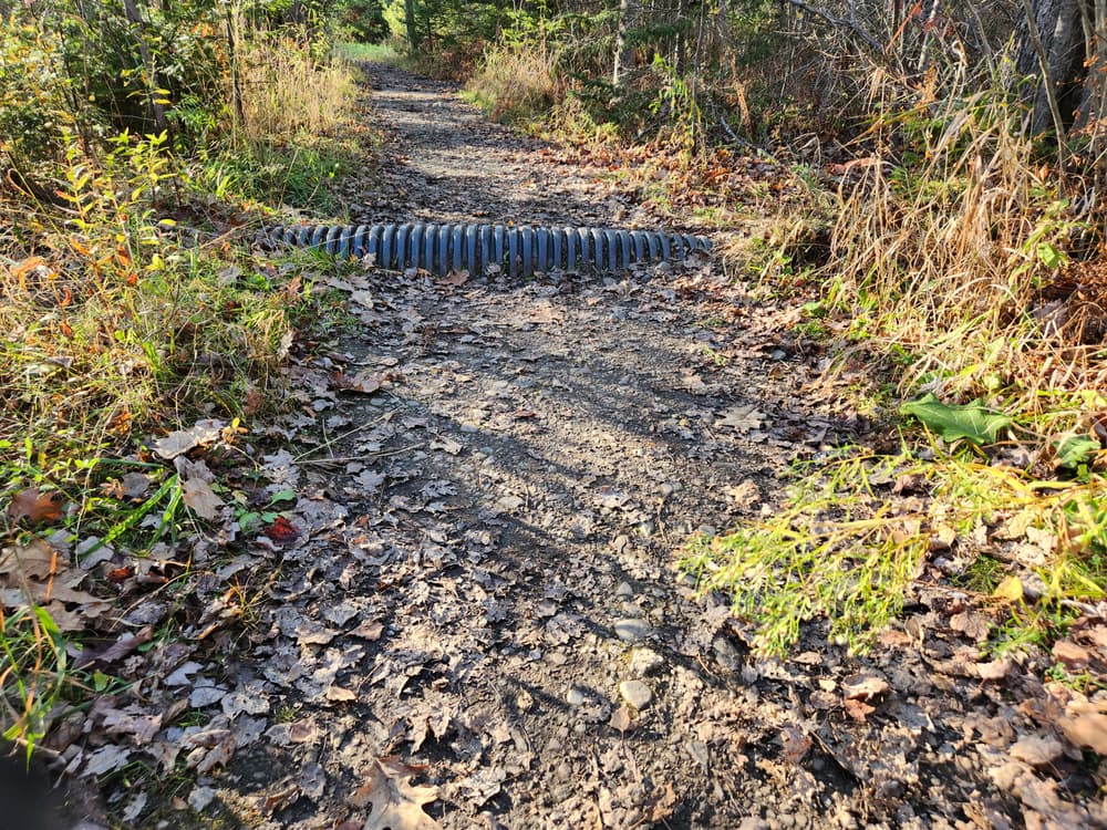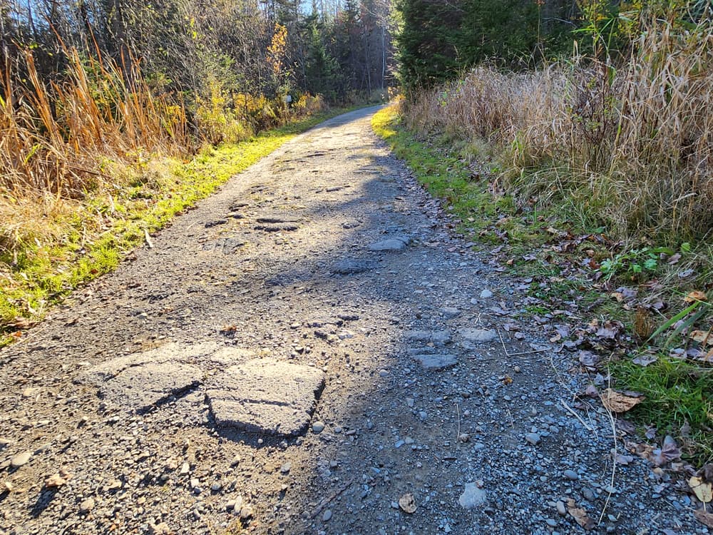 The secondary trails can be accessed from these gravel roads at numerous points throughout the network, and consist of narrow trails with dirt and forest floor surfaces.