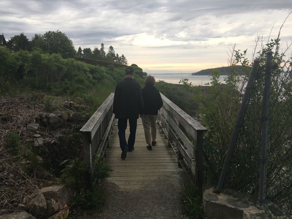 A peaceful walk along the shore in downtown Bar Harbor, featuring great views and fragrant beach roses.