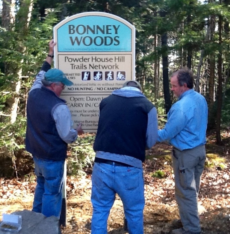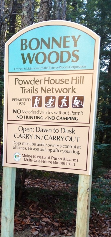 The Powder House Hill Trails Network, completed in 2012, includes the 10 acre Bonney Woods, the nearby 44 acre Flint Woods and adjacent to that, the 43 acre Village Woods. This listing describes the recreational trails through the Bonney Woods. The Farmington Village Corporation (Water Department) and the Bonney Woods Corporation now manage all three woods on Powder House Hill as one park.