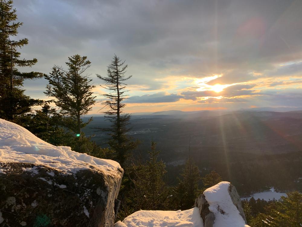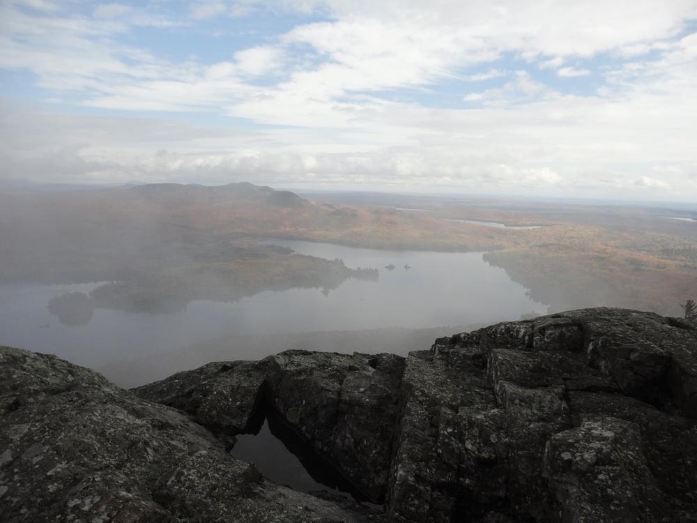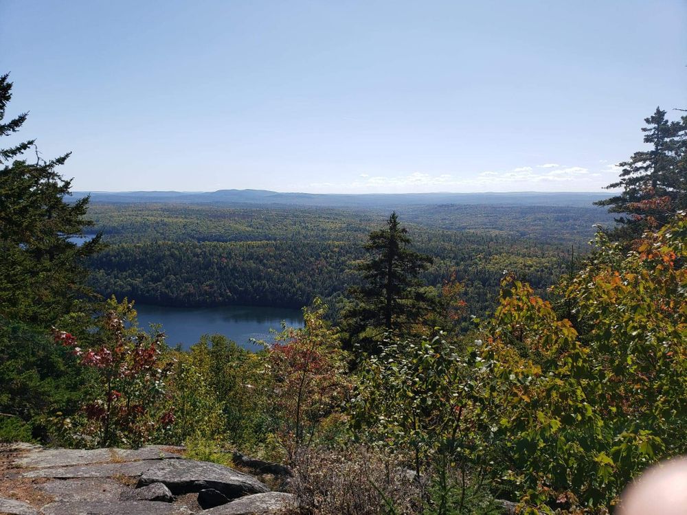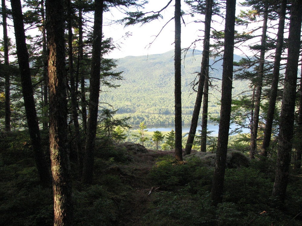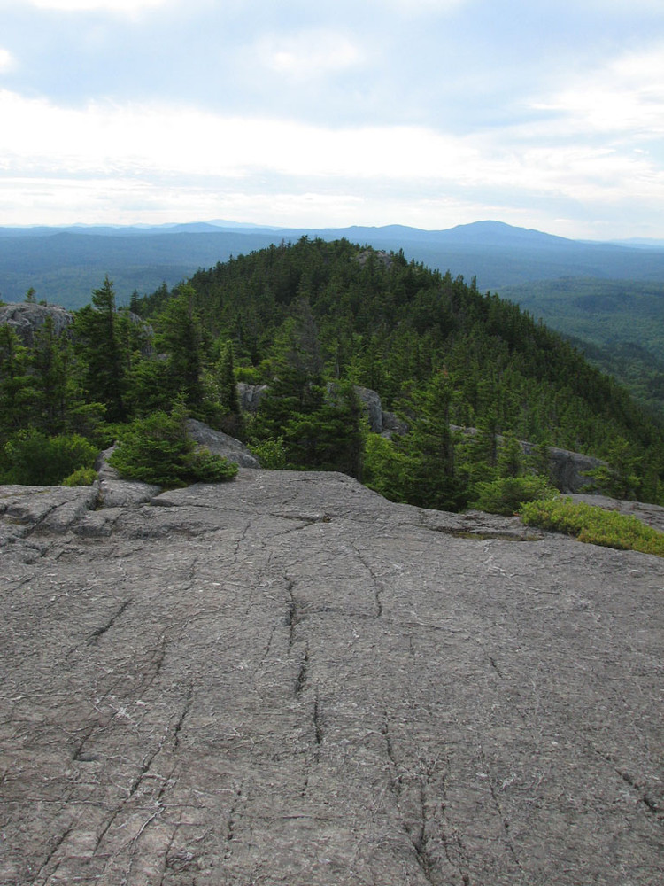 Summit Trail (0.8 miles): The Summit Trail starts at the visitor center and curves around the south side of the pond. After about 0.2 miles the trail begins a steep ascent towards the summit. The ascent goes through a mature spruce forest and includes over a hundred stone steps along the way. The final ascent to the West Peak is over exposed ledge, sometimes requiring the use of hands for the climb. To reach the East Peak it is a short traverse along exposed ledge towards the summit. The East Peak summit has a sign that identifies many of the mountains, ponds, and lakes that are visible from the 360 degree view on the summit.