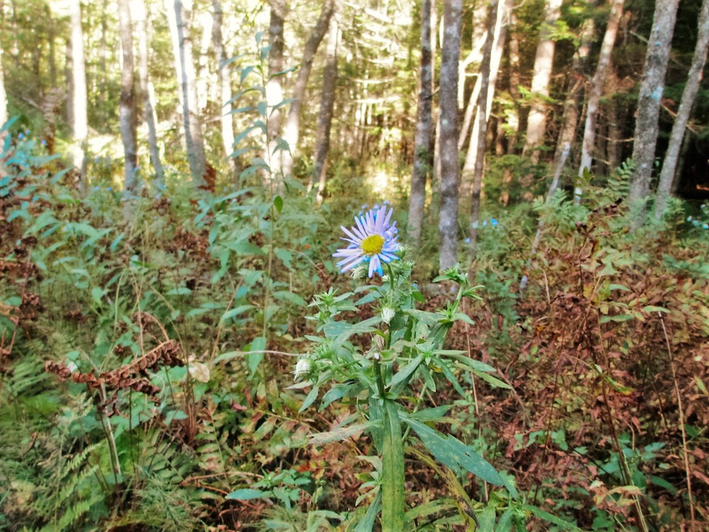 The northern network of trails can be accessed at several points along the first 0.4 miles of the White Trail, not far from the trailhead. These trails are blazed Orange #4, Blue, Yellow #3, Green/Lime #5, and Red/Green. They extend to the old stone wall which runs along the northern property boundary and pass by beautiful wildflower meadows and open woods thickly carpeted in ferns.