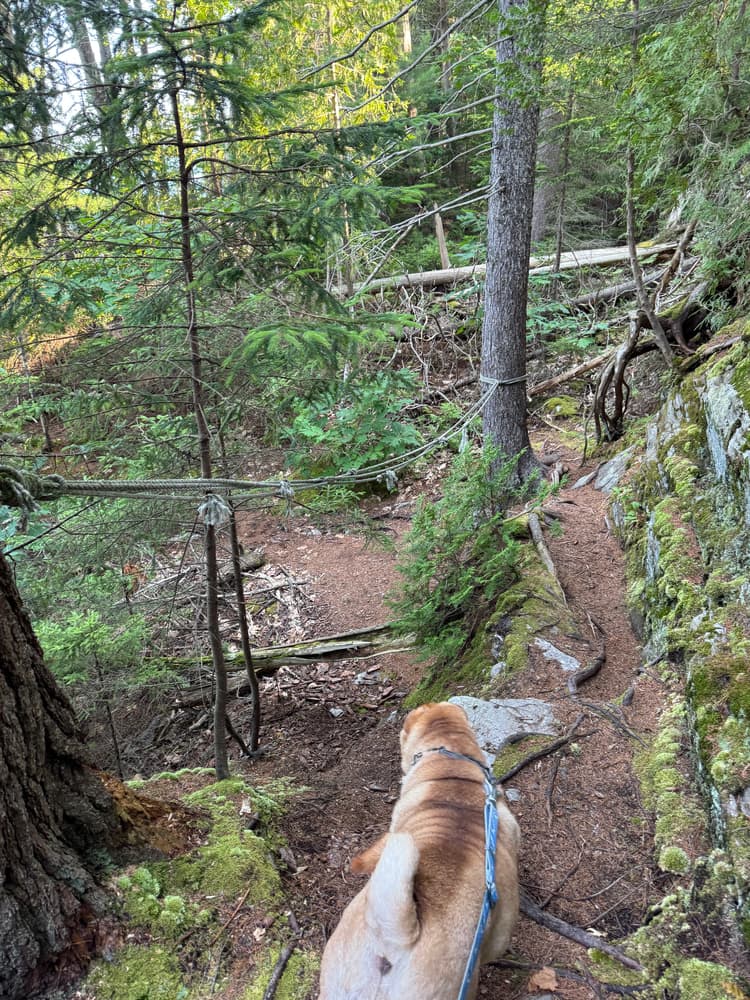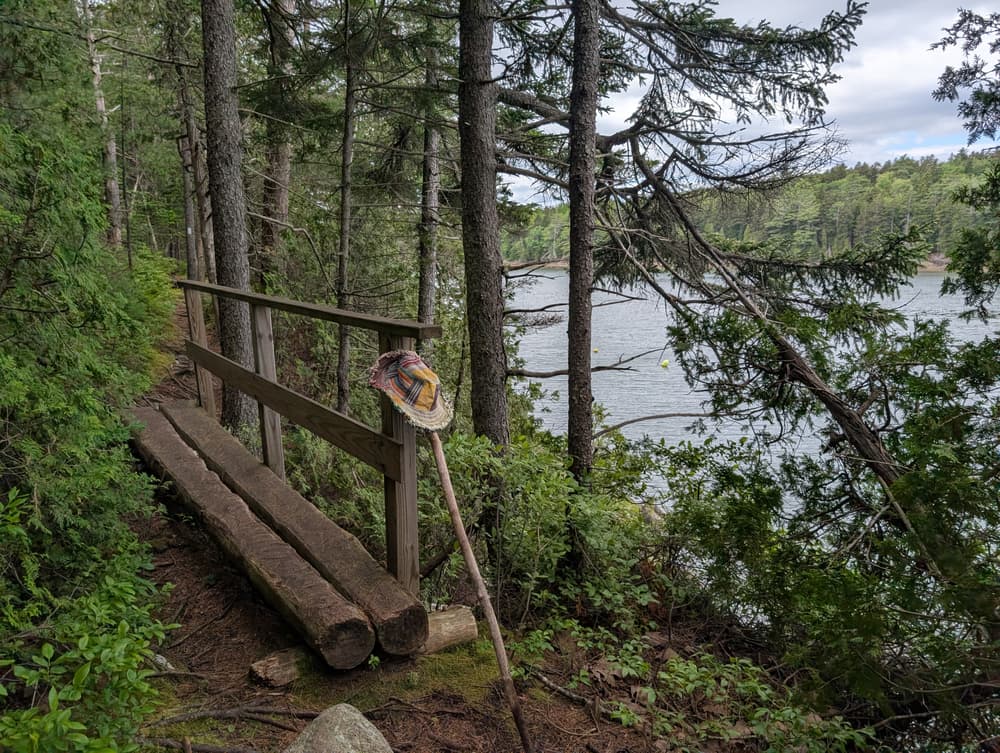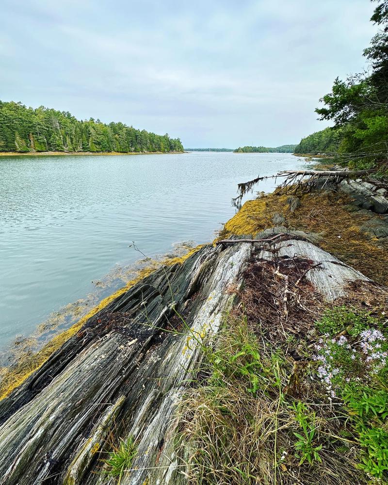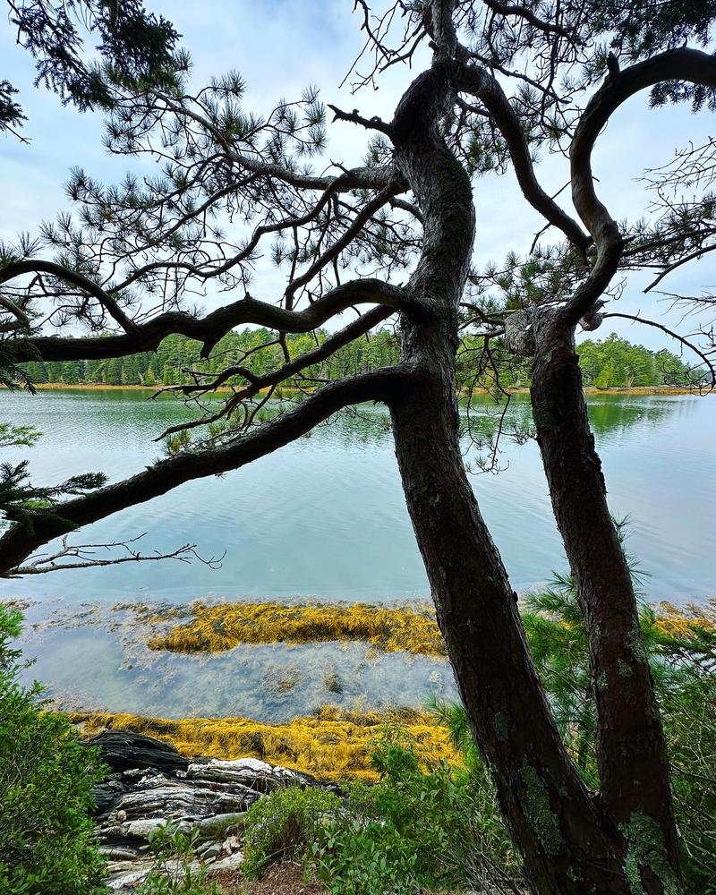The West Side Trail winds through mixed forest, including everything from old growth pines to a few hardy apple trees. The easy loop trail descends to Long Cove, providing numerous views of the water.