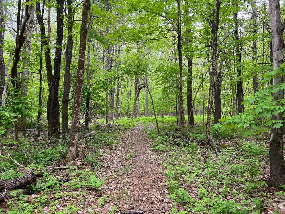 The trail is open for walking, snowshoes, or other primitive uses. Bikes are not allowed. The trails includes a half-mile trail through the woods, and a loop that travels 0.4 miles along the river. There are some bridges with open grids; due to the openings, these bridges are not suitable for dogs, bikes, or small children. Please respect the close proximity of neighbors and keep dogs on leash or under strict voice control. Accessibility to the trail is limited by the steep drive from the parking area (boat launch) and the need to cross busy Route 9 before entering the woods.