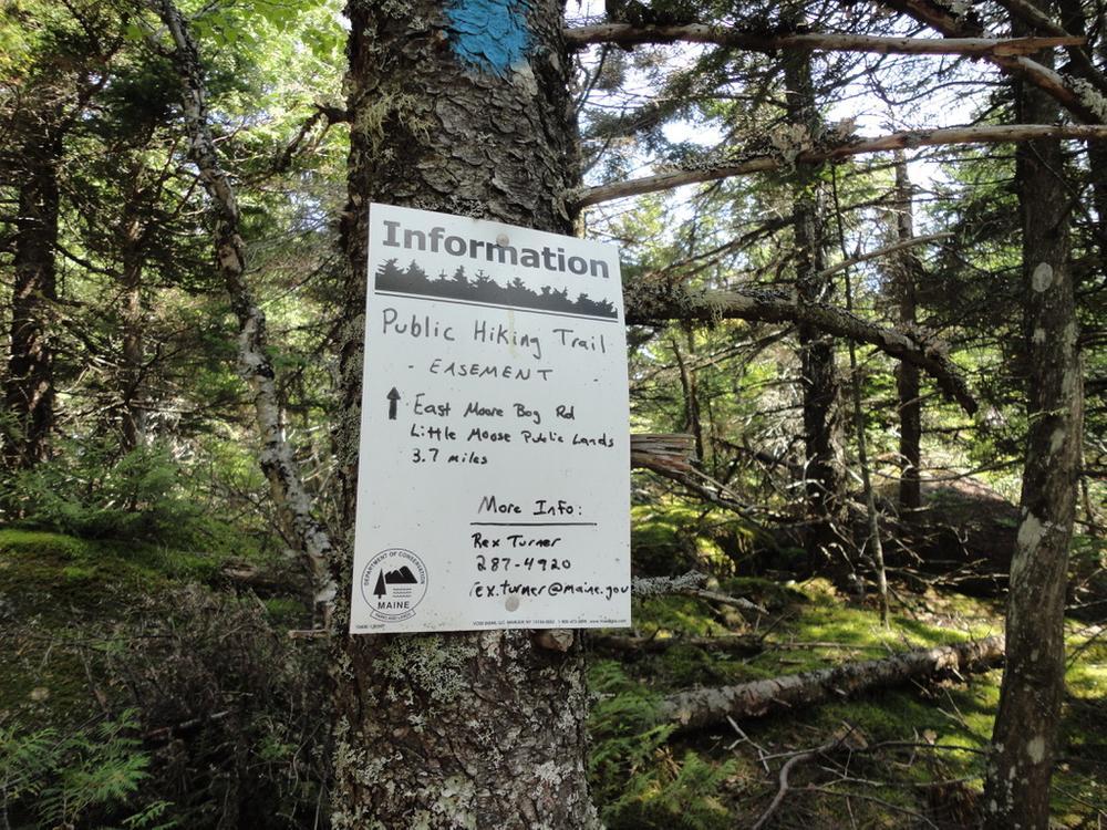 The trail is a primitive footpath originating on the Little Moose Public Lands managed by the Maine Department of Agriculture, Conservation and Forestry’s Bureau of Parks and Lands. It soon enters onto property owned by Weyerhaeuser; trail segments on private land are protected in perpetuity by a trails easement and most of the surrounding lands are part of a 363,000-acre conservation easement.