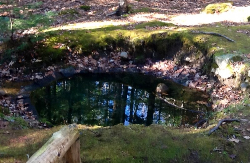 Three very interesting old wells in Flint Woods, a very easy walk from the parking area, once contained rainbow trout. The wells were dug after the civil war as a part of the Farmington Village water system. There are two vernal pools where in wet seasons wood frogs and amphibians abound. Trek quietly to hear and see the wood frogs. The covered reservoir (Farmington Public Water supply) is at the center of the Village Woods. See if you can locate the intriguing, round Old Stand Pipe. Only the base remains of this water storage tank built of steel in the early 1900’s. It is on the western slope of Ridge Road (see map) and can easily be missed. The Stand Pipe was found to be used for target practice by the youth of the neighborhood.
