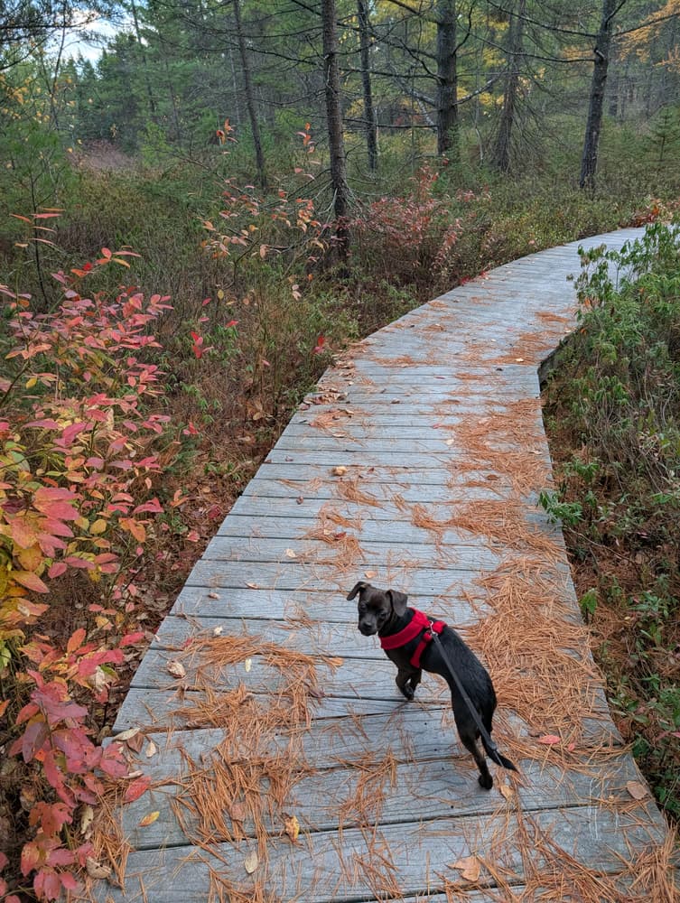 Two trails provide access to the Garcelon Bog; one connects between two streets on a gravel path, and the other is a one way boardwalk with interpretive panels placed along the trail.