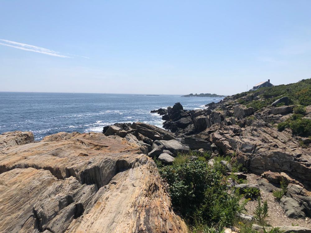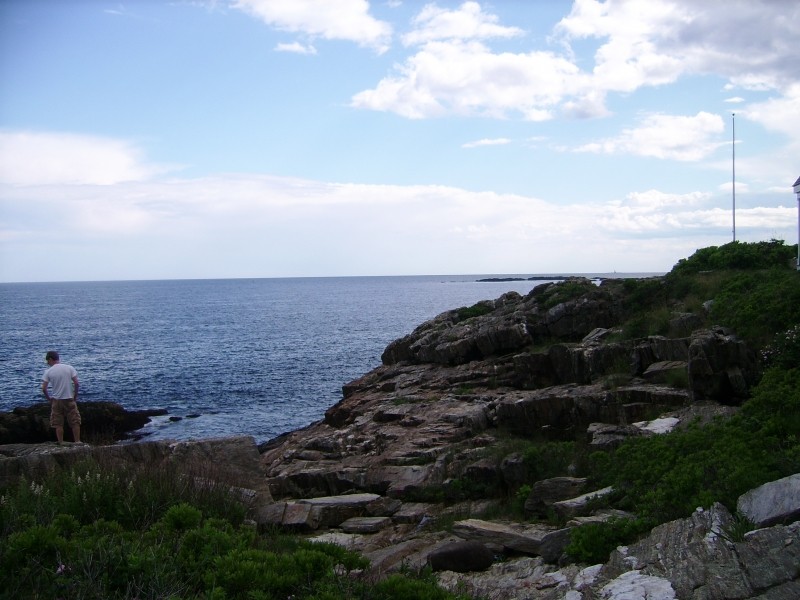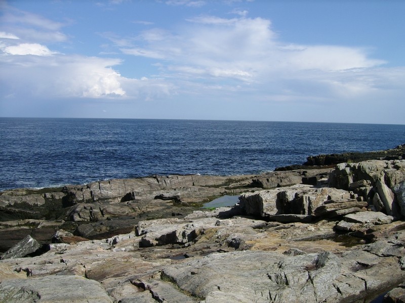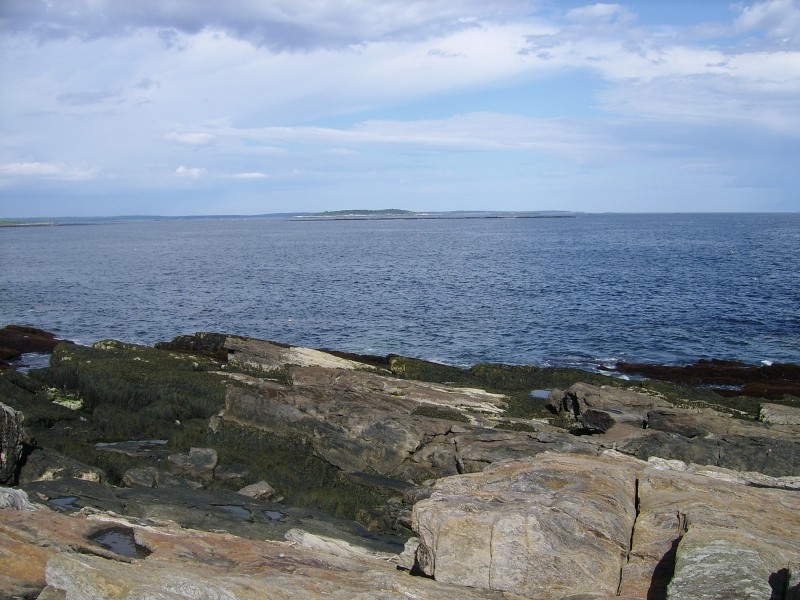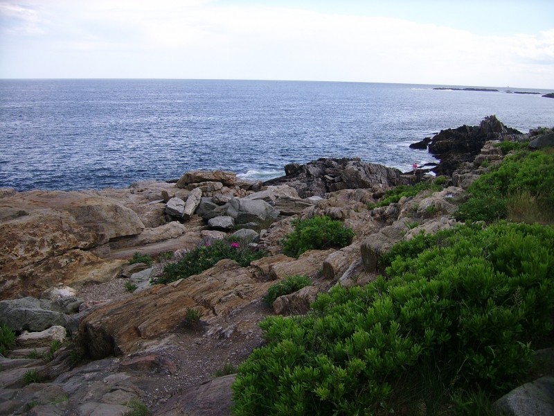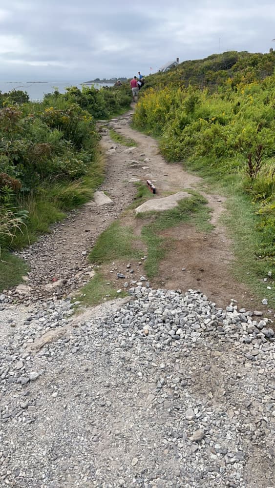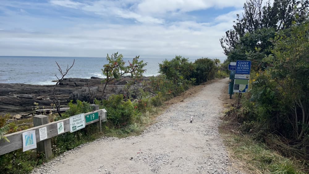 The Giant's Stairs trail and property is owned and maintained by the Town of Harpswell. In 1910 the 2.5-acre strip of coastal land was deeded to the Town by Captain William Henry Sinnett, a lifelong resident of Bailey Island. Historically there was a narrow foot path filled with poison ivy that led to the monument and beautiful views, but in 2008 with a Maine Recreation Trail Grant, the Maine Conservation Corps and various Town committees and community members, the rustic 700-foot path was resurfaced, widened, and stabilized. The remaining 700 feet of trail runs across the rocky ledges where you can find a small rocky beach, Pinnacle Rock, and "Thunder Hole." Please be sure to follow the red blazes along the rocks to stay on Town property.