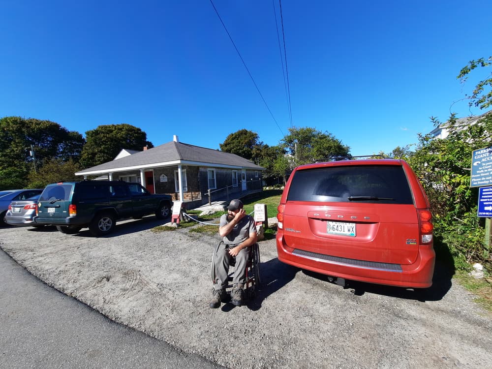 There is a steep downhill from the church parking area to the north trailhead, but there is an unloading zone for vehicles right at the trailhead to bypass the steep entry if necessary.