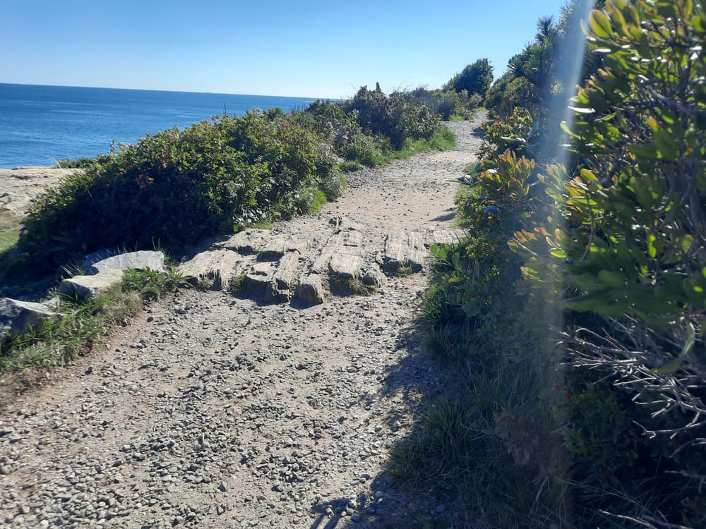 The rock formations here are a geologist’s dream, but even a layman can appreciate the gigantic forces that shaped this coastline going back 500 million years. Layers of mud formed the original sedimentary rock, along with deposits of minerals that later crystallized into quartz and garnet. Movements in the Earth’s crust pushed the rock layers upward, causing massive buckling and cracking. Gradually, hot magma from deep below the surface flowed into one large crack and formed a vertical seam of dark basalt rock, known to scientists as an “intrusive volcanic dike.