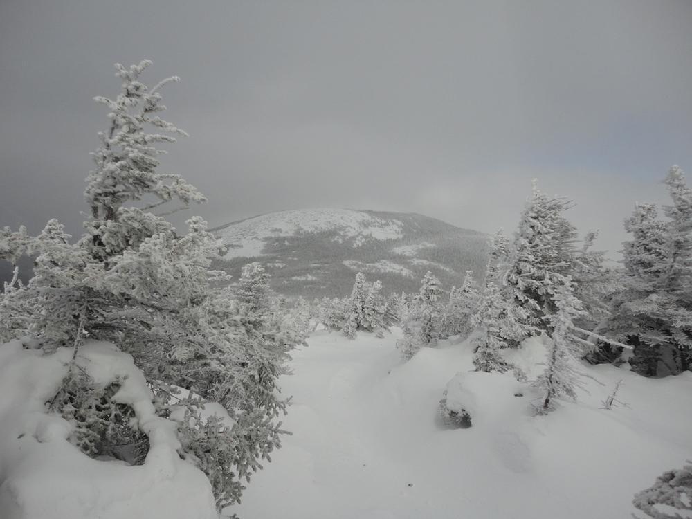 Baldpate Mountain (5.8-7.6 miles round trip, advanced): Located beyond the Table Rock Trail in the Mahoosuc Public Lands, Baldpate Mountain includes two summit hikes with fantastic views. Hiking to the West Peak is a 5.8 mile round trip and is a challenging hike. The East Peak of Baldpate is another mile past West Peak and brings the trip total to 7.6 miles round trip. From the parking lot, cross ME Route 26, and follow the white blazed Appalachian Trail northbound. In 0.1 mile continue on the AT passing the orange blazed table rock trail on the right. Next you will pass the blue blazed side trail to Table Rock on right at 0.9 mile. After this trail you leave the park boundary line and ascend steeply up the North slope to the summit of West Peak (3,680 feet). If you desire to travel to East Peak (3,812 feet), continue on following the white blazes for one mile.