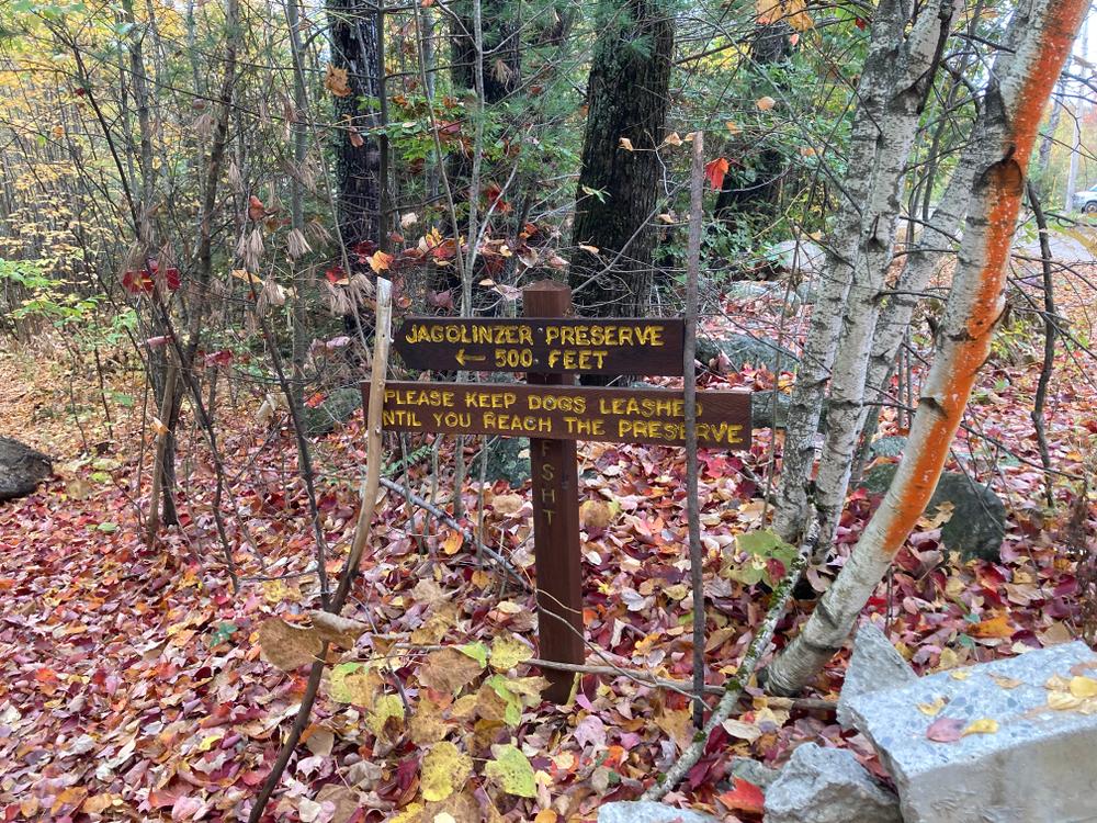 The Jagolinzer Preserve is available during daylight hours for hiking, nature study, and other low-impact activities such as cross-country skiing. If you picnic in the preserve, please carry out your trash and leave the flora and fauna as you find it. Motor and wheeled vehicles are not allowed in the preserve at any time (except for mobility access). The Jagolinzer Preserve is surrounded by private property, so please be considerate of the neighbors. Hunting is allowed, so dress appropriately during hunting season. Please keep your pets under control.