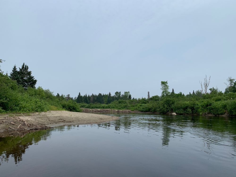 From the put-in, the Kennebago River slowly winds through uninhabited forests. The river is mostly flatwater, except for one short section of quickwater and rocks found about 0.1 miles after the put-in. It is best run by cutting to the far left before going back to the middle of the river to avoid the rocks on the sides. While this section has no big waves or strong current, it requires some quick maneuvering. The rest of the 3.75 mile paddle is in calm water around many meandering bends.The take-out is just beyond the ME-16 bridge on the left side of the river at a sandy beach.