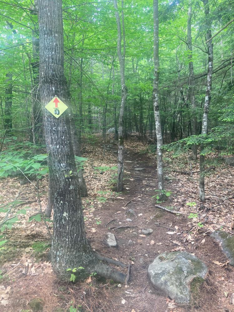 Maine Bureau of Parks and Lands, Western Public Lands OfficeThe trailhead is off Watson Pond Road, which leaves from the west side of ME-27 about a mile north of the intersection of ME-27 and ME-225 in Rome. From ME-27, drive south on Watson Pond Road 4 miles to the parking area located on Watson Pond Road. This parking lot also serves as parking for the Round Top Trail. The trailhead is at the north end of the parking lot, marked with a small mountain biking sign, and with an 8-foot bridge at the start of the trail.