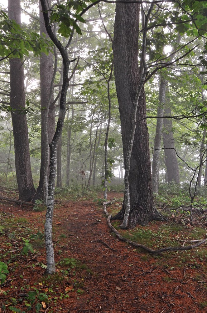 From the parking area, walk down to the end of the road through the stone gate to the entrance of the preserve (2/10 of a mile, straight ahead, all turns are private driveways).