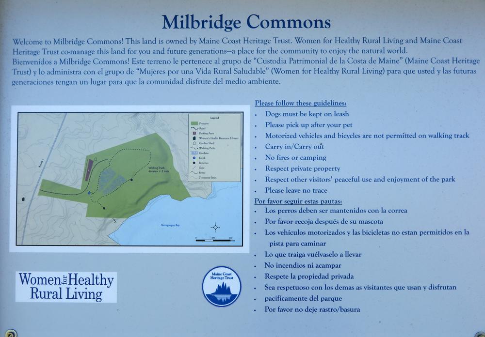 Women for Healthy Rural LivingThe preserve is located on US-1, less than 0.25 miles south of the center of Milbridge, across from the town’s Historical Society. Coming from the north, go 0.4 miles on US-1 from its junction with US-1A, and the park will be on the left. Coming from the south, go 2.3 miles on US-1 from its junction with Pigeon Hill Road (on the right), and the park will be on the right shortly past a bridge by Wyman Road.