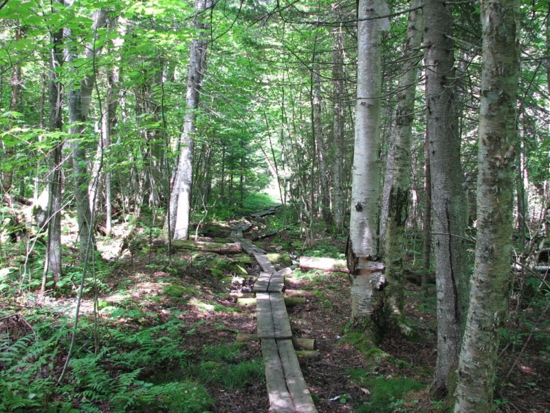 The Moose Country Corridor Trail is a 0.7-mile, easy hike, and runs from just past the control station on the left, back onto the entrance road. This trail has nice, lush, green mossy undergrowth, surrounded by large stands of white and yellow birch with intermingled spruce and fir trees. Enjoy the peace and quiet away from the campground and take in the many sights and sounds of the surrounding forest.