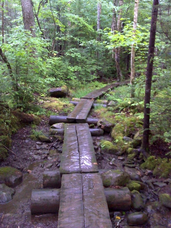 The Shoreline Trail is 0.9 mile in all, flat terrain with many exposed roots, travels along the lake shore. Starting from the campground loop, the trail takes hikers on a serene walk through the woods and comes out at the park's swimming area lawn, offering a spectacular view across Rangeley Lake and Saddelback Mountain. Continue straight back into the woods where there are large birch trees to your right and the clear lake waters off to your left. The trail ends at the park's boat launch, which is a great way to end a hike, sitting along the shore and enjoying lunch while overlooking the pristine lake waters and surrounding mountains.