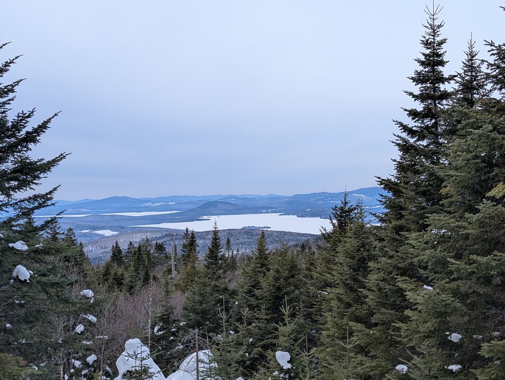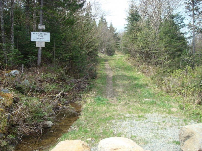To access the trailhead, turn on to Dallas Hill Road from ME Route 4, just south of downtown Rangeley. Continue for 2.5 miles before bearing right on to Saddleback Mountain Road. After 4.6 miles, the road enters the Saddleback ski area with the lodge on the left side of the road and three large parking lots to the right. Park in any of these and walk up the main road (first left) as it turns away from the lodge and winds up the mountain through condos. There are signs for the Rock Pond Trail. The trailhead is located at the end of the road at an emergency vehicle turnaround where there is also a large sign for the trail.