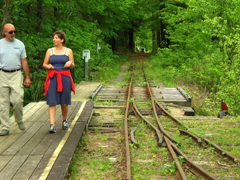Users please note that this is an easy trail; however, the short section on the railroad track makes for uneven walking, and also, if the Sandy River and Rangeley Railroad is offering rides on the day of your visit, this section of the trail on the tracks will be closed!