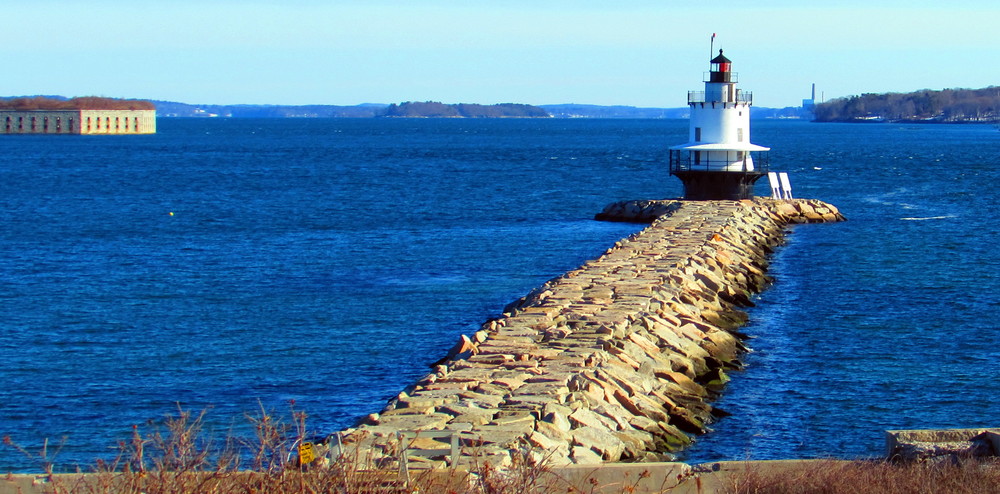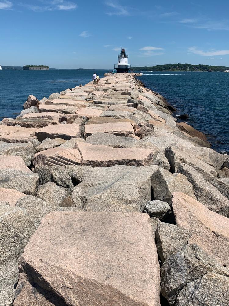 Features of the trail include Fort Preble which was built in 1808 and used during the War of 1812 and held Confederate soldiers during the Civil War. The nearby Spring Point Head Light was built in 1867 while the accompanying granite breakwater was added in 1951, and currently provides a popular walk with commanding views of Portland Harbor and Casco Bay. The granite stones of the breakwater provide more uneven walking and shouldn't be done in windy or stormy weather.