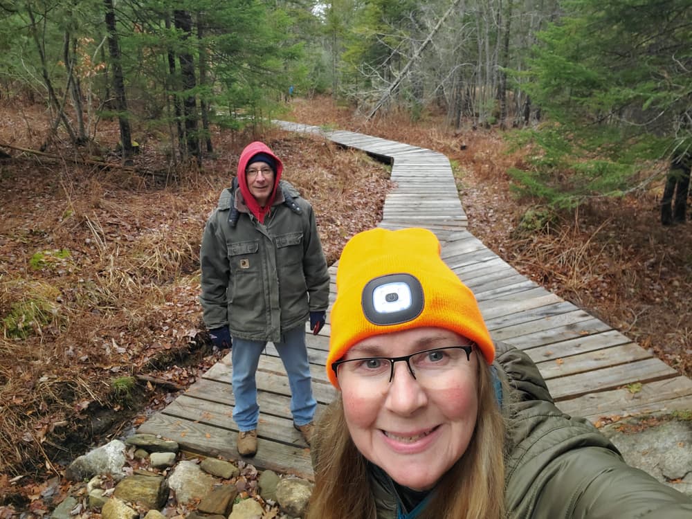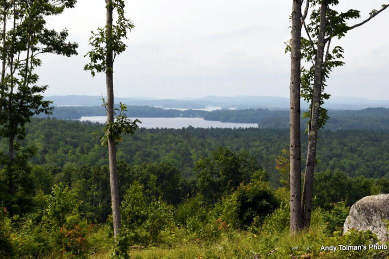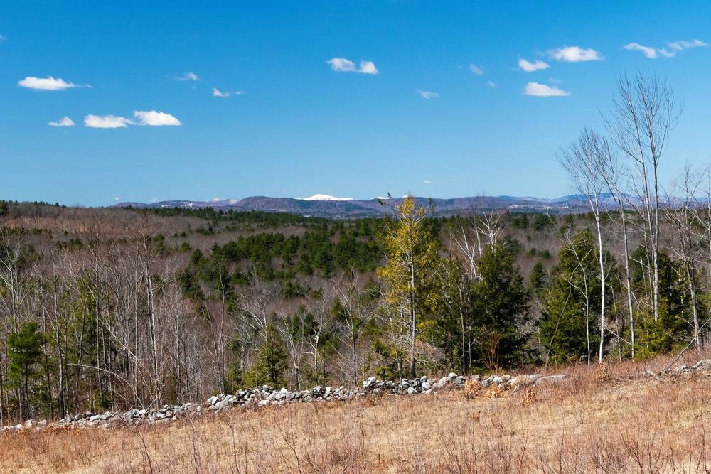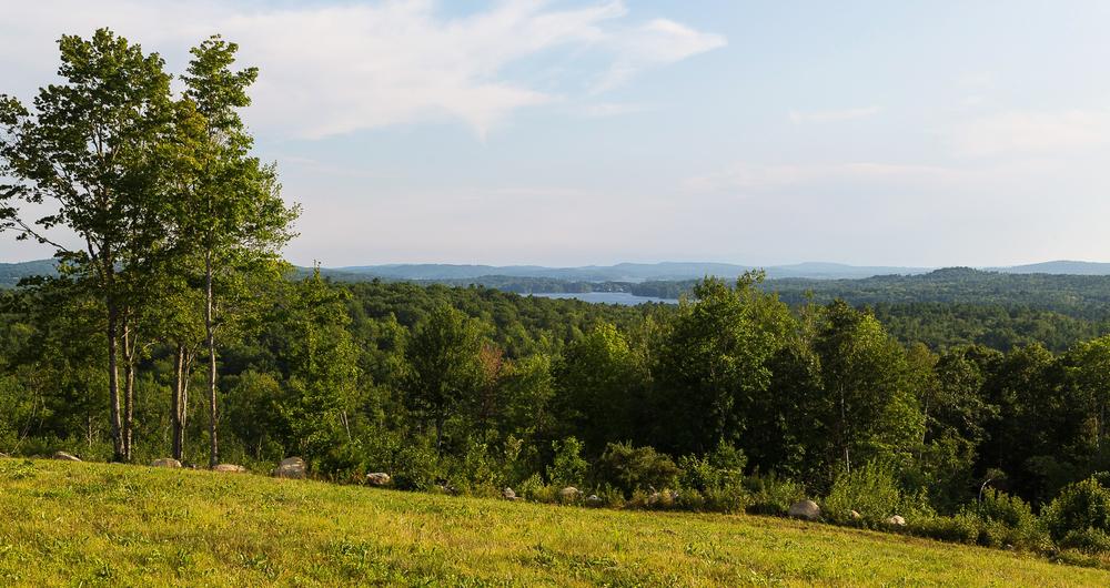 The multi-use trails include a 0.7-mile loop heading south from the trailhead, which travels through the woods with low slopes. The trail continues with an additional 0.5 loop to the south, from which there is a 0.2-mile trail uphill to the summit of the hilltop. Fields at the summit offer offer panoramic views of the surrounding lakes and Mt. Washington. The trail from the parking lot directly to the summit without looping is 0.8 miles one-way.