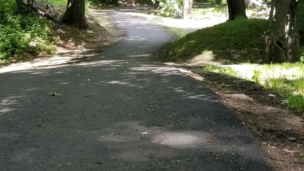 The Swift River Walking Trail is a paved walkway that meanders through a young deciduous forest. The paved surface of about six feet wide is suitable for strollers, wheelchairs, and others with mobility challenges. The trail parallels the Swift River offering many beautiful views from the river's banks, and it provides a calm getaway from the athletic fields. Distance markers keep users informed on how far they have traveled along the path.