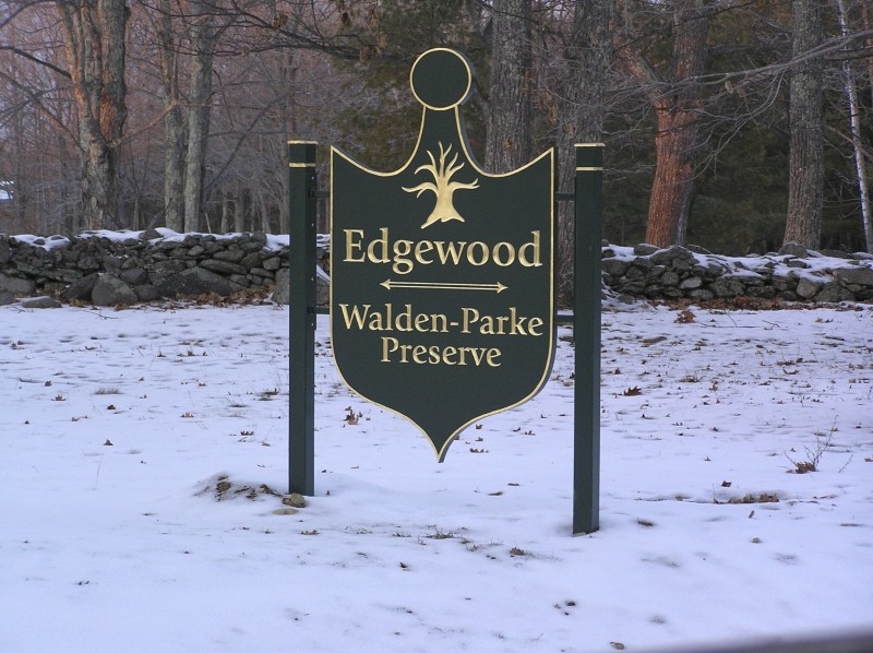 Bangor Land TrustFrom downtown Bangor go out Essex Street almost to the Orono town line, and turn right on Walden Parke Way at a sign that says Edgewood Walden-Parke Preserve. If coming from Orono this is a left turn just past the town line. Turn right on Tamarack Trail. Follow Tamarack Trail to the end, and park along the edge of the cul-de-sac.