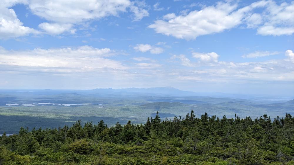 The summit rewards hikers with incredible views in all directions. To the south is the Barren-Chairback range, to the east is Greenwood Pond, Katahdin is to the north, and to the west Hay Mountain, West Peak and Moosehead Lake are visible.