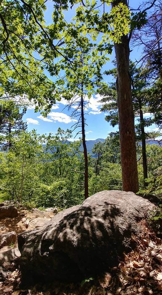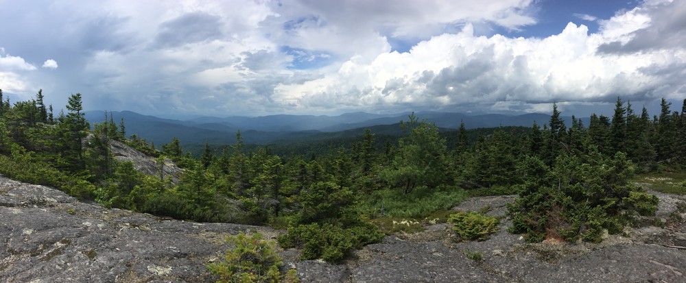 The Mud Brook Trail leaves the south side of the parking area and follows Mud Brook along an old woods road, ascending gradually for 1.7 miles. The trail then turns left, crosses Mud Brook several times, and begins to climb steeply over a small bare knob. It then descends to a small ravine, crosses ledges, and then reaches the summit of Caribou Mountain at 3.0 miles. Rock markers (cairns) clearly direct hikers over the rocky summit. The trail intersects with Caribou Trail at 3.6 miles allowing hikers to make a 6.7 mile loop back to the trailhead on ME Route 113.