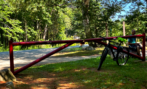 Once past that spot there are several long hills as in the photo to the right, that just keep going up with the next bend. It reminded me of Acadia’s Carriage Trails in that way. So I suspect the route will only be delightful if you have pedal assist or are in great shape or both.