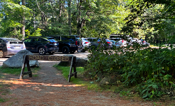 The northern stretch of the Ski Shelter Trail is one protracted downhill glide of 6-8%, landing at a parking area by ME-175.