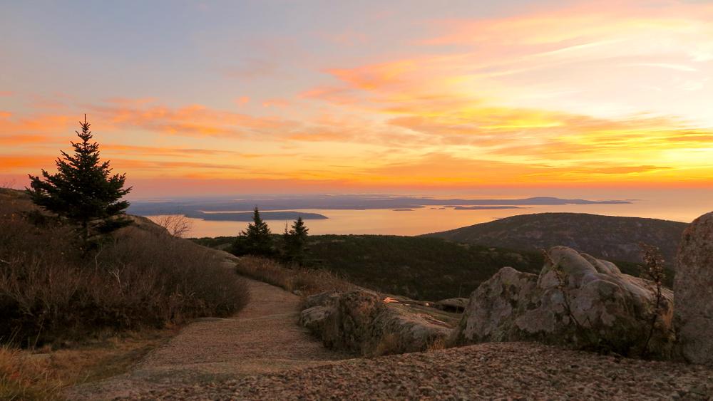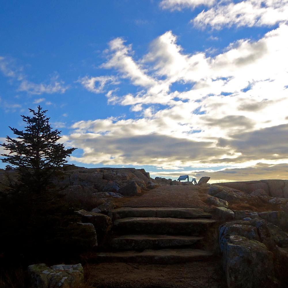 The 2.1 mile North Ridge provides a shorter hiking route to the summit of Cadillac, compared to the 3.5 miles one way up the South Ridge. Note that the Summit Road also heads up the north ridge of the mountain, and the road is within hearing distance, and in sight of, the trail on occasion. The first half mile and the final half mile of the trail to the summit are located a good distance away from the road.