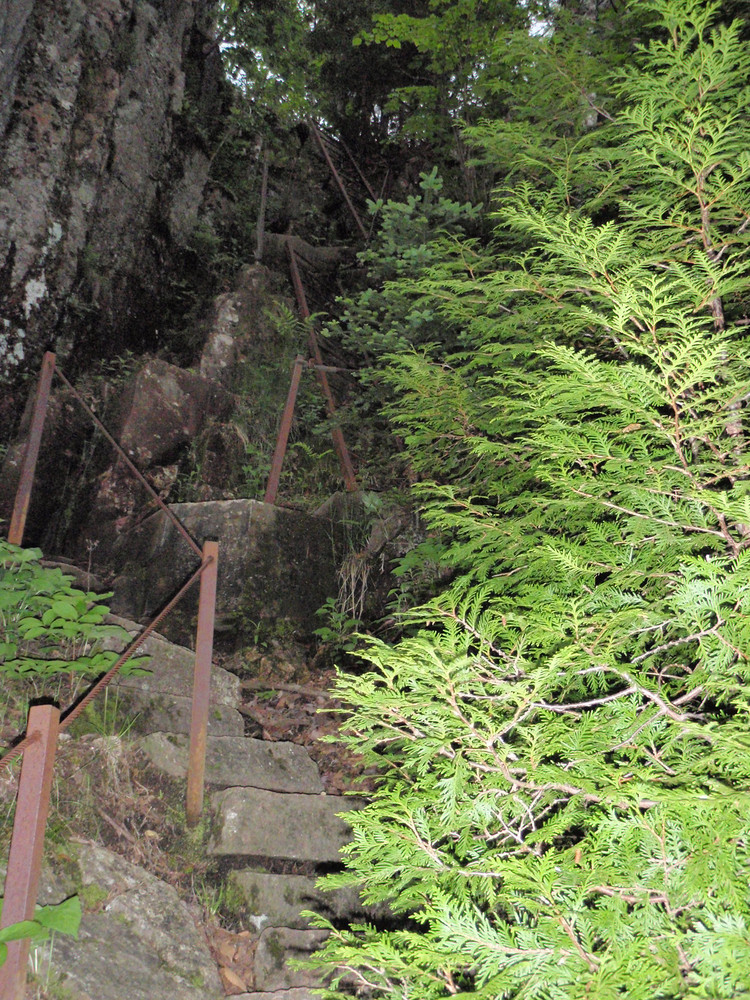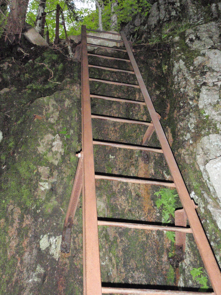 The trail becomes rugged and steep with a series of iron ladders that lead to the top of Beech Cliff. The top of Beech Cliff offers views of Echo Lake below and views toward the ocean (see note below). The Canada Cliff Trail leads to the left along the top of the cliff. The hike bears left at each junction and descends through a mixed forest leading back to the entrance of the parking area.