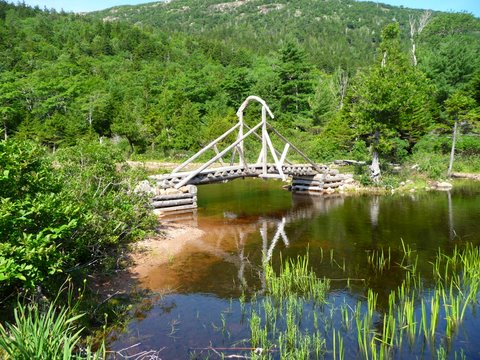 During the busy summer months, parking is very difficult to find. Leave your car at the Hulls Cove Visitor Center and take the Island Explorer Bus. From behind the restaurant walk down to the Pond.