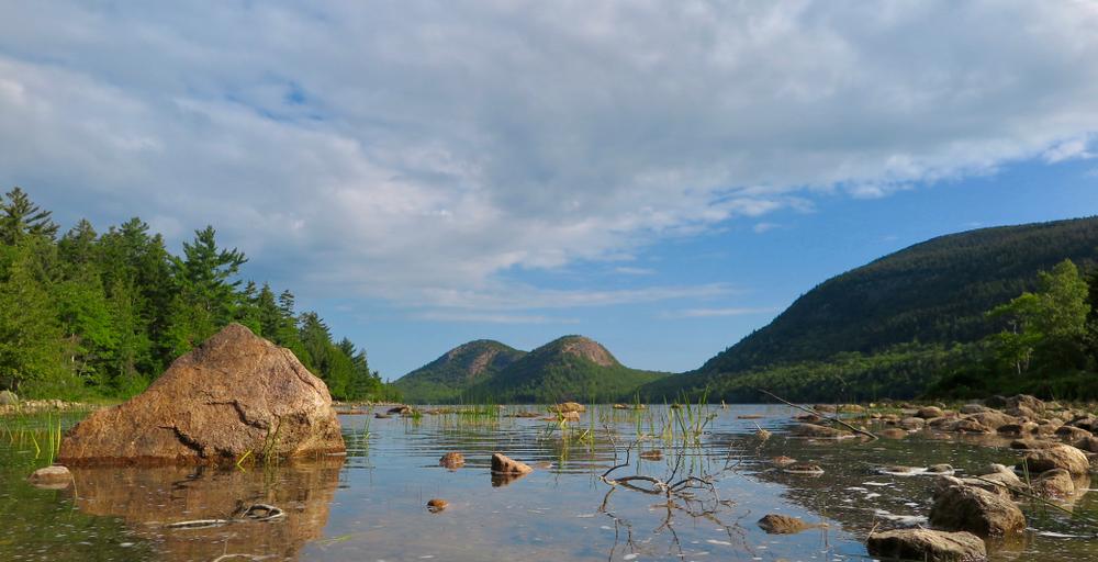 At 150 feet, Jordan Pond is Acadia’s deepest and clearest lake and is the second largest at 187 acres. It is also a public water supply. Therefore, swimming and wading is prohibited. Pets are not allowed in the water. Gulls, loons, mergansers, as well as frogs and beavers are frequently seen. At the north end of the pond look for a beaver lodge.