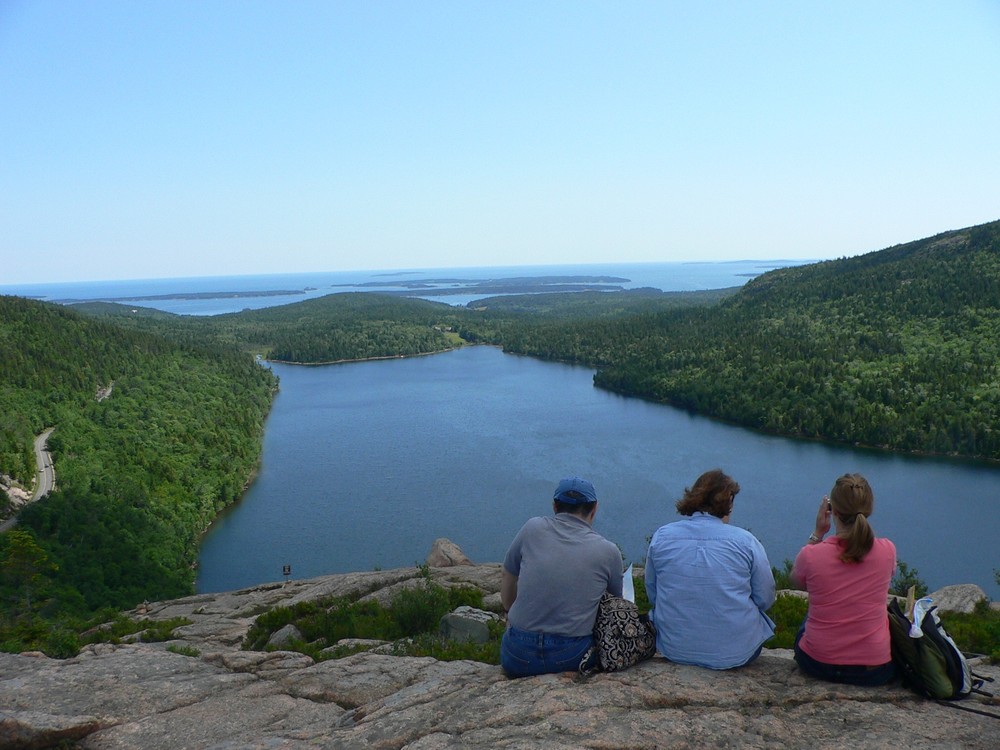 During the busy summer months the parking lot is usually full, so your best option is to leave your car at the Hulls Cove Visitor Center and take the Island Explorer Bus. The Park Loop Road is closed December 1 until April 15. This hike can be accessed from Jordan Pond by taking the Jordan Pond Path to the Carry Trail. Snowshoes are recommended during the winter. See the park website for winter access information.