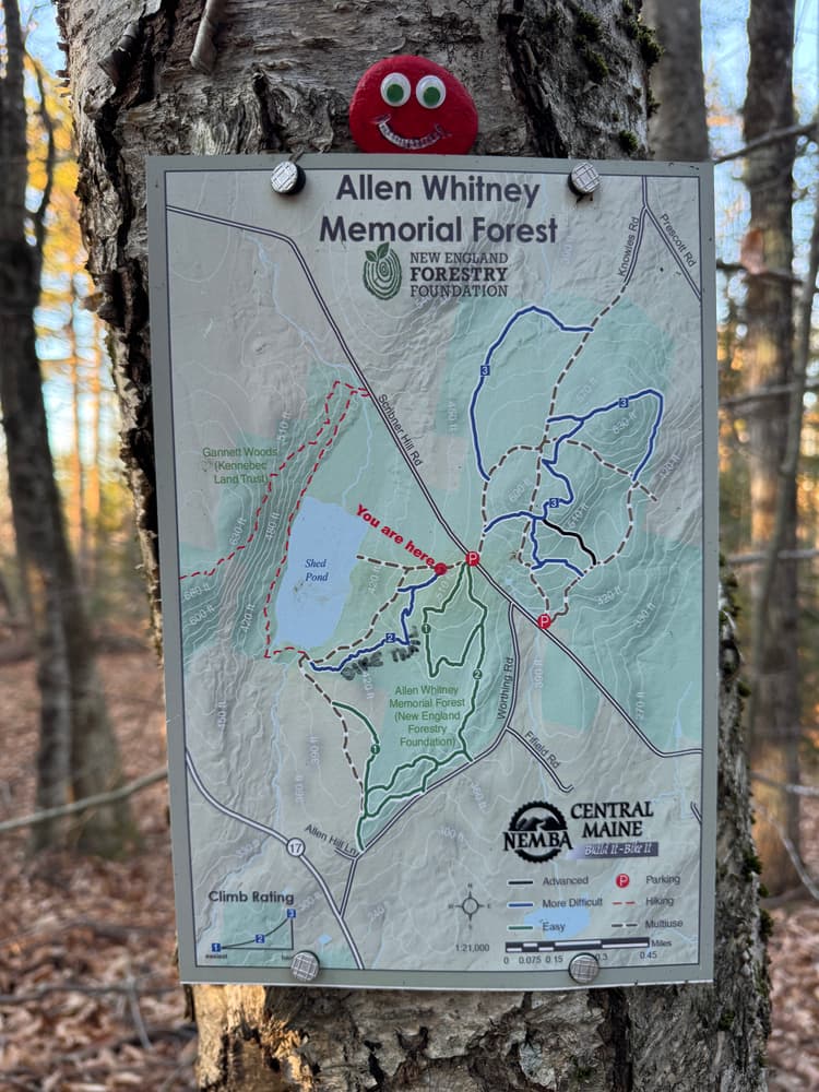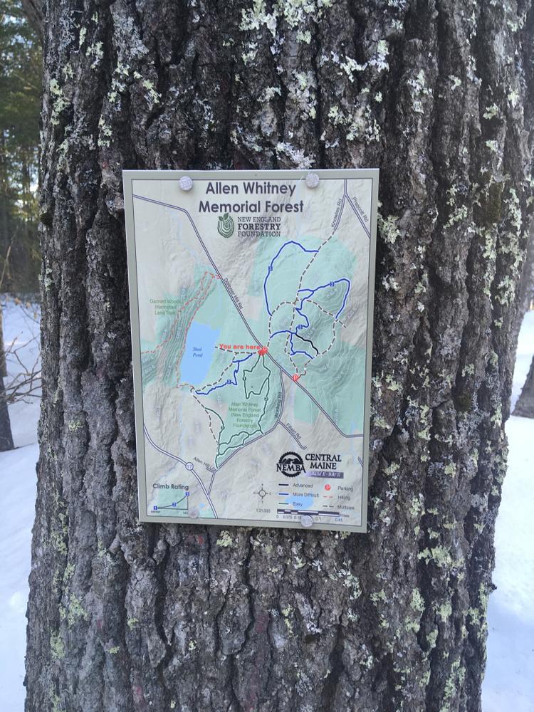 From Augusta: Go west out Rt 100/Rt 11 past all the car dealerships until you hit Prescott Road, take a right there. Continue approximately 2.5 miles, then take a left on Scribner Hill Road. In 0.9 miles, there will be a New England Forestry Foundation sign and a small parking area.