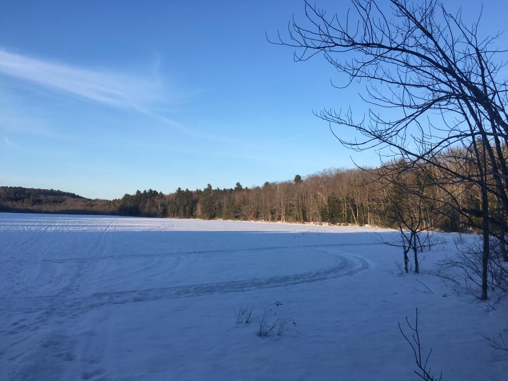 There is slight elevation gain on some of the trails, but they are mainly flat. The forest has been professionally managed since 1950, and contains a diverse array of stand types and management history. Shedd Pond is entirely encircled by conservation land and provides a moderate fishery for pickerel.