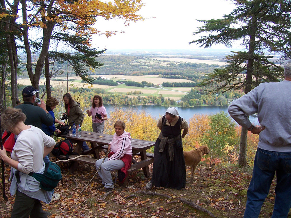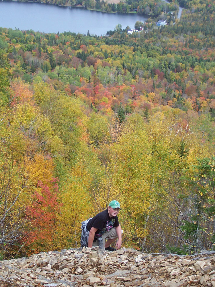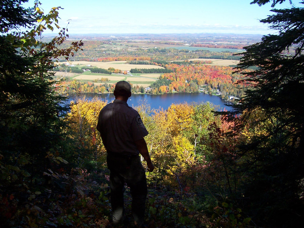 This trail ascends through upland hardwoods and conifers to the northern summit of Quaggy Jo (Elevation 1,107') and is a constant uphill climb. While very demanding, it is less technical than the South Peak Trail, and views from the summit will not disappoint. This trail is a perfect short hike for visitors limited on time: it takes 1.5 hours on average to hike and return to parking lot. Hikers climbing up the North Peak trail should return via that route and not attempt to descend via the South Peak trail.