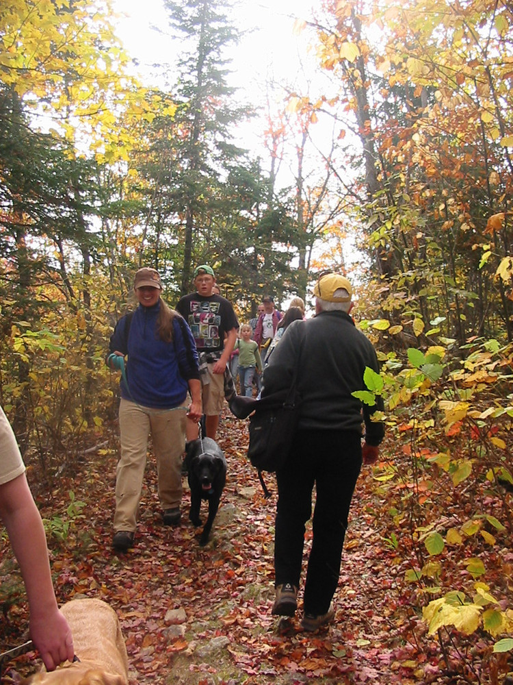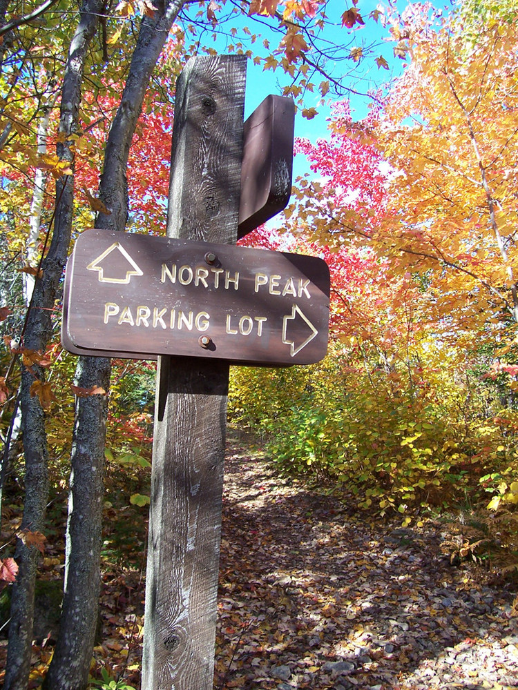 This trail meanders along the ridge between the two peaks offering varied terrain and diverse vegetation. In the notch of the mountain, hikers will cross a spring which is one of the head waters of Echo Lake. A beautiful overlook offers beautiful views east over Echo Lake.