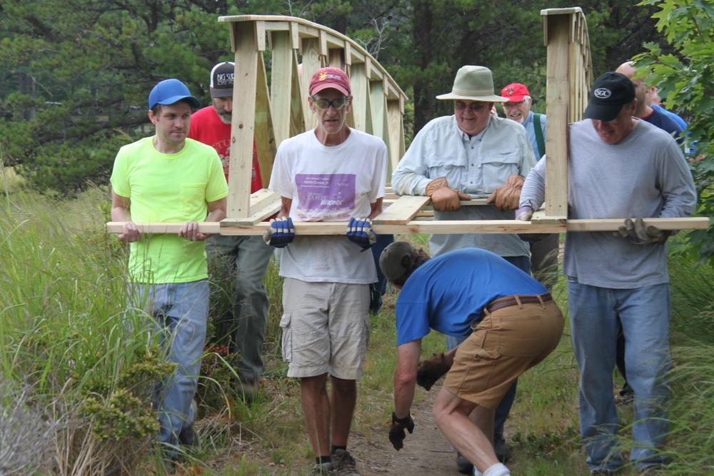 Two-thirds of a mile along the trail, you will see a sign for Plymouth Trail, which intersects from the right (south). Where Atlantic Trail, about 0.1 mile further, opens into the Goosefare Brook Marsh, there is a bridge with an 8” step up. The trail continues on about another 0.2 mile through the marsh to Seaside Avenue. As you pass through the marsh, keep your eyes open for various species of ducks and an occasional heron. See Trail Access Information & Considerations below for more information about this Accessible Adventure.