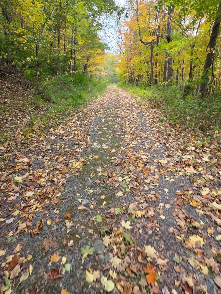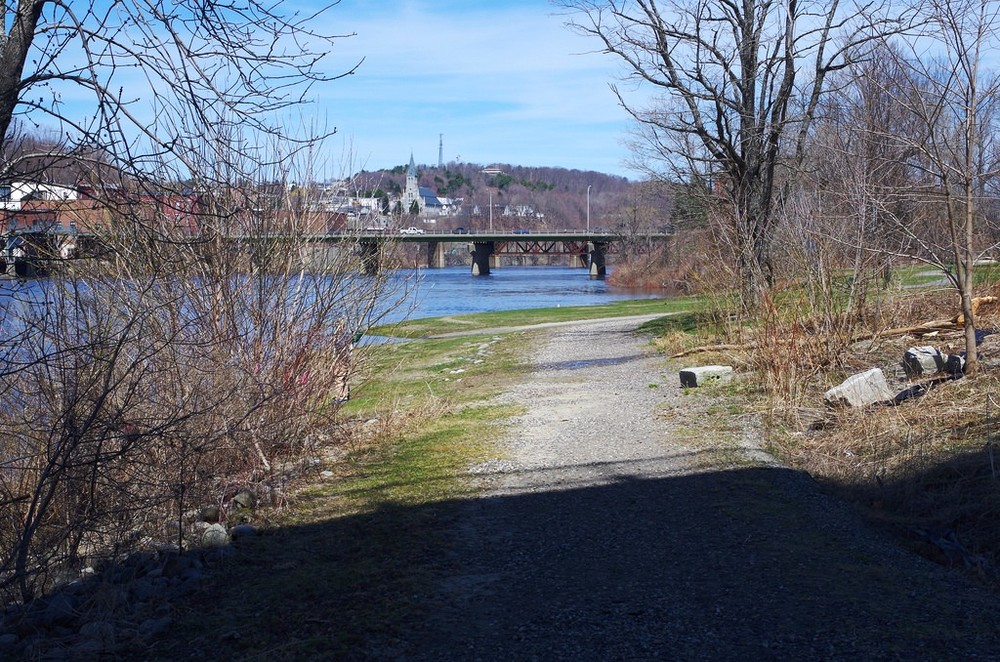 From the Eastside Boat Landing Park, the Augusta Greenway Trail goes both north to Old Fort Western and south along the river, passing under Memorial Bridge and along the snow dump. Heading south, the trail takes a fairly straight and level path under a canopy of box elders and other hardwood trees.